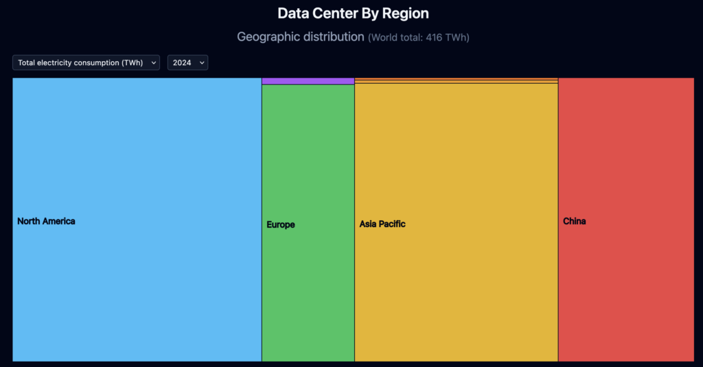 Data centers are not evenly distributed. They are concentrated in regions such as the United States, Europe, and East Asia. Each region has different electricity mixes, costs, and infrastructure constraints.