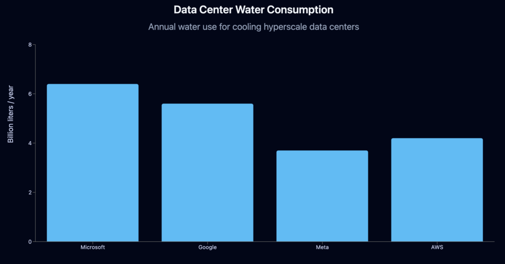 This chart focuses on the water required to cool data centers, a less visible but critical resource.